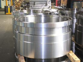 Ein geschweißter Schacht Ø 1080mm aus Stahl mit komplexen Konturen auf den Planseiten die im Durchmesser 950mm mit +/-0,02mm toleriert sind.